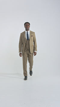 Heren 3-delig visgraat tweed bruin geruit pak, getailleerde pasvorm, dubbele klassieke pasvorm