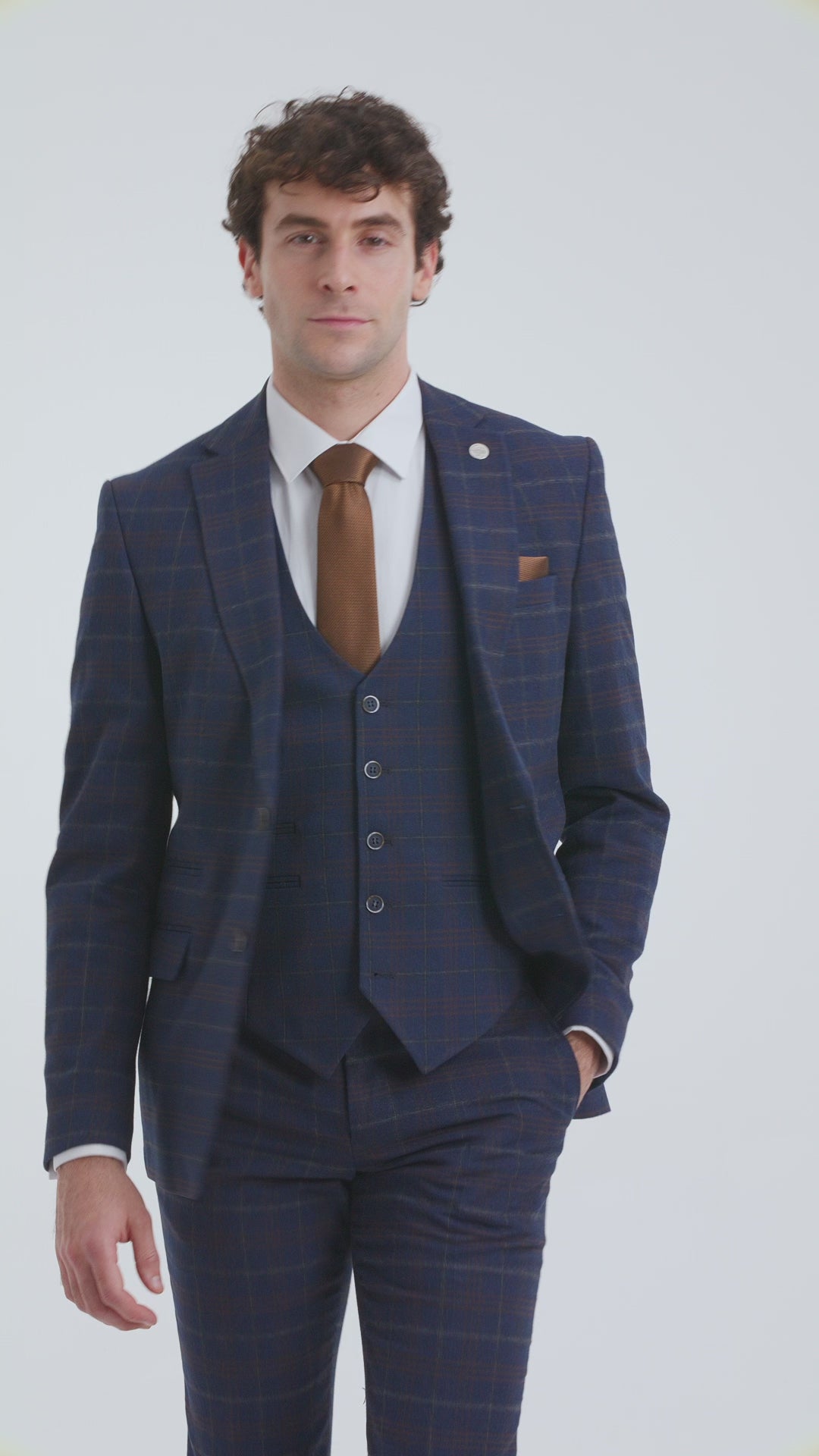 Marineblauw geruit driedelig herenpak - Paul Andrew Kenneth